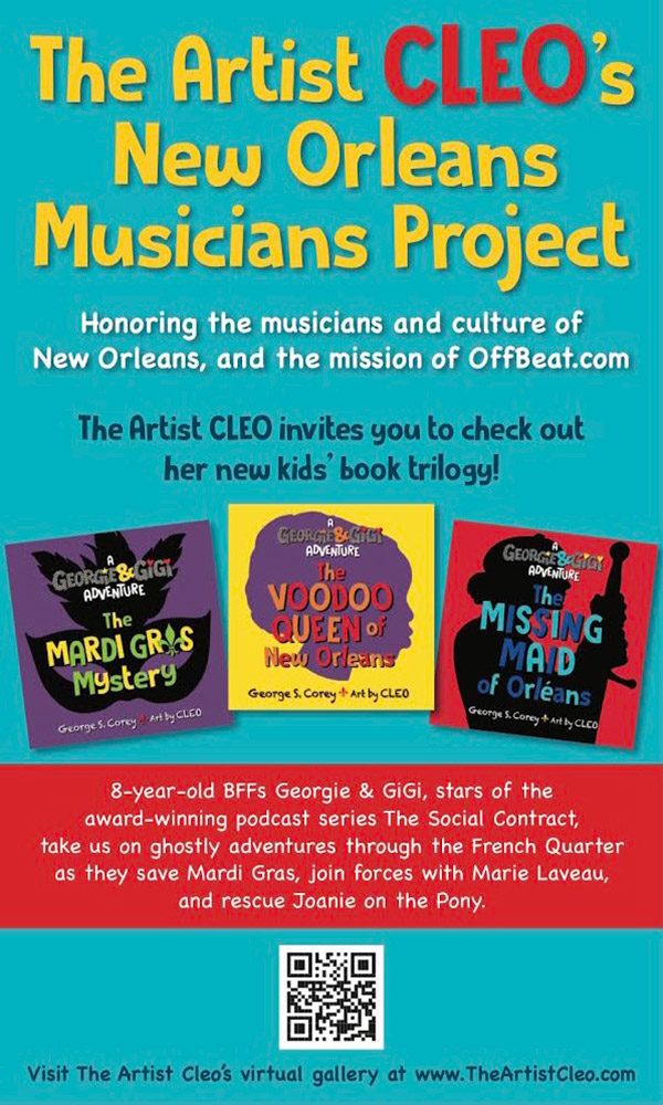 CLEO is an acclaimed visual artist who creates in multiple mediums. A frequent collaborator with George S. Corey, CLEO’s socially conscious art can be seen in The Mardi Gras Trilogy books (The Mardi Gras Mystery, The Voodoo Queen of New Orleans, and The Missing Maid of Orléans) as well as Presidential Conversations and Presidential Conversations for Kids. Her work has also inspired and been showcased in numerous digital and audio singles. Through her socially conscious creative work and civic awareness, she remains committed to inspiring young minds and nurturing tomorrow’s leaders. CLEO continues to hone her artistry through travel, from which she draws constant inspiration.